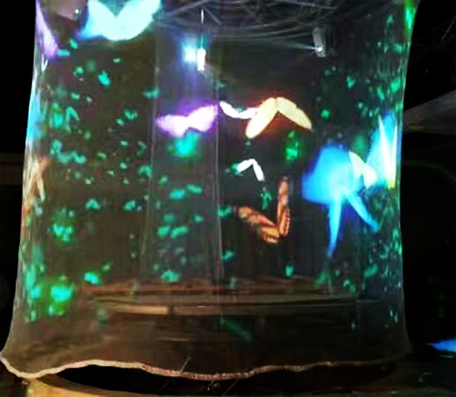 幻影成像系統(tǒng)也稱虛擬成像是基于“實(shí)景造型”和“幻影”的光學(xué)成像結(jié)合,將所拍攝的影像(人、物)投射到布景箱中的主體模型景觀中,演示故事的發(fā)展過(guò)程。繪聲繪色,虛幻莫測(cè) ……
